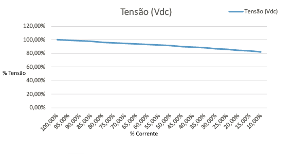 No gráfico abaixo é demonstrado como o valor de Voltage: diminui conforme diminuímos a corrente. Este gráfico é um exemplo, os valores irão mudar de LED para LED.