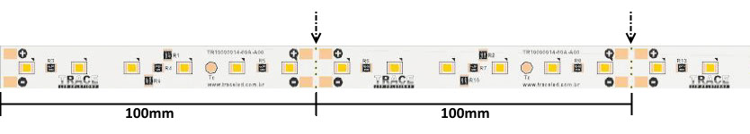 This module can be divided into up to 10 pieces of 100 mm each. The Voltage: of the module will remain the same informed in the table above, however the current of each fraction will be equivalent to the total current of the table divided by 10.